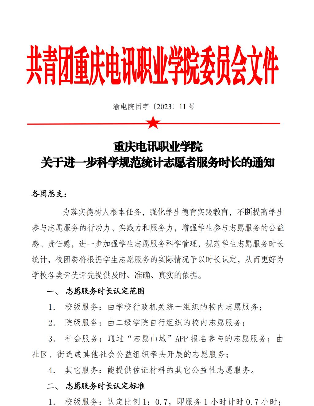 重庆电讯职业学院关于进一步科学规范统计志愿者服务时长的通知