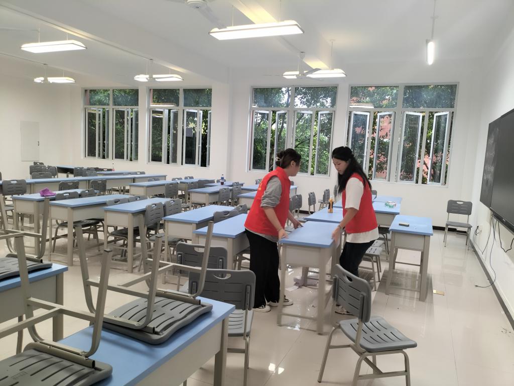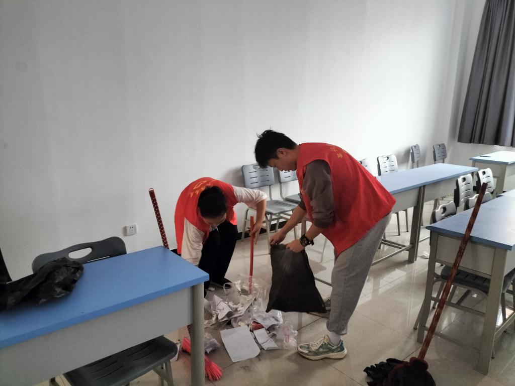 书香满溢、知识殿堂、求知之地,必使不染尘埃,只余书声琅琅。2022年9月23日上午,为了给我校广大师生同学一个优美的教学环境,由教务处李志老师提议,校团委李丹玉老师带领志愿者对教学区七号楼进行卫生打扫。