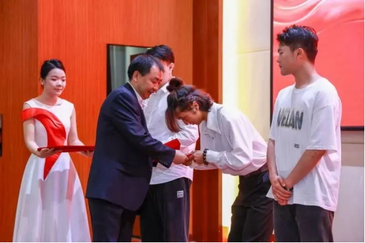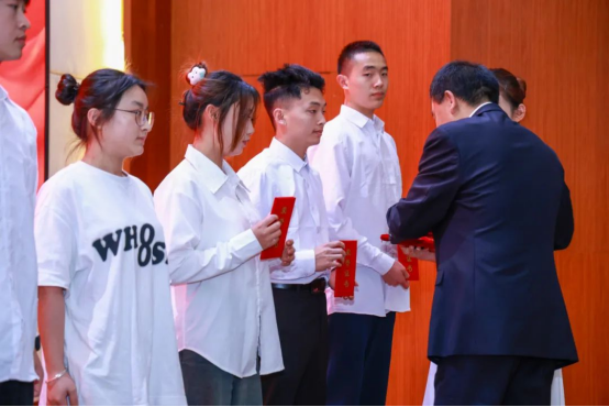 三好学生代表李阳冬,分享了在校期间通过"九章工匠"培养计划实现专业技能与综合素质的全面提升,以“蓝桥杯”全国软件和信息技术专业人才大赛二等奖和连续两年国家奖学金等成绩,展现了学校"红色铸魂、技能立身"的育人成效。他号召同学们传承五四精神,坚持知行合一,在数字时代勇担使命,将个人成长融入国家发展,用实际行动践行"走进来人人成才,走出去人人成功"的育人目标。