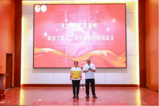 常务副校长郭万斌宣读了《关于表彰2023-2024学年学生先进集体和个人的通报》《关于表彰先进团总支、团支部、优秀团干部、优秀团员、“电讯红”校园文化讲解团优秀讲解员的通报》。